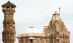 Chittorgarh - this sprawling hilltop fort epitomizes the whole romantic, doomed ideal of Rajput chivalry. The fort stands on a 280 hectare site on top of a 180m high hill, which rises abruptly from the surrounding plains. Until 1568, the town of Chittor was also on the hilltop within the fort walls, but today's modern town, known as Lower Town, sprawls to the west of the hill. A river separates it from the railway line and the rest of the town. According to legend, Bhim, one of the Pandava brothers of the Mahabharata, is credited with the fort's original construction. Three times in its long history, Chittor was sacked by a stronger enemy and on each occasion the end came in true Rajput fashion as jauhar was declared in the face of certain defeat. Men donned the saffron robes of martyrdom and rode out from the fort to certain death, while the women and children immolated themselves on a hug funeral pyre. Honour was always more important than death. All of Chittor's attractions are within the fort. There are palaces, towers, reservoirs and temples within the fort. Rana Kumbha's Palace has elephant and horse stables and a Shiva Temple. One of the jauhars is said to have taken place here. Fateh Prakash Palace houses a small museum. Near this palace is the Meera Bai's Temple, an ornate Indo-Aryan temple built during the reign of Rana Kumbha and associated with the mystic-poetess Meera Bai. Padmini's Palace is built beside a pool with a pavilion in its centre. Legend relates that as Padmini sat in this pavilion while Ala-ud-din Khilji was allowed to see her reflection in a mirror in the palace. This glimpse led Ala-ud-din to destroy Chittor in order to possess her. But Padmini had committed jauhar. Across this palace is the Kalika Mata Temple, an 8th century Sun Temple, which was later converted to a temple to goddess Kali. The Jaya Stambha (Tower of Victory) was erected by Rana Kumbha to commemorate his victory over Mahmud Khilji of Malwa in 1440. Rising at 37m with nine storeys, Hindu sculptures adorn the exterior of the tower. Near the tower is Mahasati, an area where the Ranas of Chittor were cremated during Chittor's period as capital of Mewar. There are many sati stones here commemorating women who burned themselves on their husband's pyre. Beyond this area at the edge of the cliff is the Gaumukh Reservoir, a deep tank. A spring feeds the tank from a carved cow's mouth in the cliff, hence the name. The opening here leads to a cave in which Padmini and her compatriots are said to have committed jauhar. Chittor's other famous tower is the 22m high Kirti Stambha (Tower of Fame). Built by a Jain merchant, it is dedicated to Adinath the first Jain tirthankar (apostle). Said to be older than the Victory Tower it features naked figures of many Jain tirthankars , thus indicating that it is of the Digambara (sky clad) sect. more....